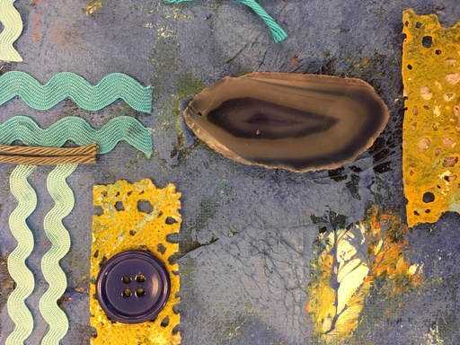 Komposities van materialen op beschilderd doek